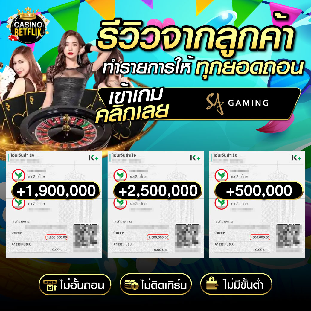 ใครที่กำลังท้อแท้กับการหมุนสปินแล้วไม่เคยได้สัมผัสกับคำว่าโบนัสก้อนโต ขอให้รีบย้ายค่ายมาซบพิงอกเราด่วนๆ เพราะที่นี่ขึ้นชื่อลือชาเรื่องความใจป๋าแจกแหลกไม่แคร์สื่อ เกมสล็อตของเราผ่านการคัดกรองมาอย่างเข้มงวดว่าต้องเป็นเกมที่มีอัตราการจ่ายรางวัลสูงปรี๊ดเท่านั้นถึงจะนำมาให้บริการได้ วัยรุ่นทุนน้อยก็ไม่ต้องน้อยเนื้อต่ำใจไป เพราะแค่เงินหลักสิบก็สามารถงอกเงยกลายเป็นหลักหมื่นได้ภายในชั่วข้ามคืน ความลับของความสำเร็จอยู่ที่การเลือกลงทุนกับแหล่งที่ใช่และเชื่อถือได้ ซึ่งเรากล้ายืนยันเลยว่าไม่มีที่ไหนที่จะให้คุณได้มากเท่านี้อีกแล้ว ระบบการทำงานของตัวเกมถูกเซ็ตมาให้มีการปล่อยรางวัลอย่างต่อเนื่อง ไม่ว่าคุณจะเข้ามาเล่นช่วงเวลาไหนก็มีสิทธิ์ลุ้นรับแจ็คพอตแตกกระจายได้ตลอดเวลา ภาพกราฟิกในเกมก็สวยงามระดับเทพทะลุจอ ซาวด์ประกอบก็เร้าใจชวนให้ลุ้นระทึกทุกวินาที ยิ่งเล่นยิ่งเพลินแถมเงินในบัญชียังเพิ่มขึ้นแบบงงๆ อีกต่างหาก สำหรับนักล่ารางวัลตัวยงที่ชื่นชอบความท้าทายบอกเลยว่าคุณจะหลงรักการปั่นสล็อตที่นี่อย่างแน่นอน เตรียมตัวบอกลาความจนแล้วอ้าแขนรับความรวยแบบฉุดไม่อยู่กันได้เลย อย่ารอช้าให้คนอื่นปาดหน้าเค้กเอาเงินรางวัลไปหมด เข้ามาพิสูจน์ความปังด้วยตัวคุณเองกับ CASINOBETFLIK แล้วคุณจะรู้ว่าสวรรค์ของนักเดิมพันมันมีอยู่จริง ลุยเลยพวกเราความรวยไม่เคยรอใคร